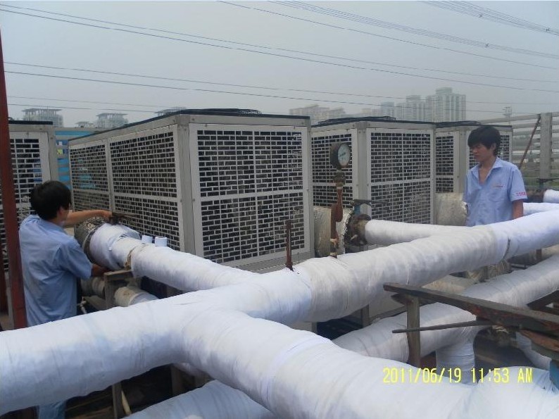 中央空調清洗技術規程 清洗工藝 機組真空正!芤褐屑尤腴_利清洗劑并循環加熱→排出溶液凈化→凈化后的溶液加入機內→依上多次循環至溶液清亮→加入開利耐高溫保護膜→溶液循環5小時左右,靜放2小時→排出溶液再生。 開利獨特的清洗工藝可使堵塞的噴淋系統通暢。 注:清洗前機組泄漏不超標。 循環水系統清洗 清洗工藝: 取樣分析垢銹成份→核定水量→投藥→循環10小時左右→排污→人工輔助清洗→清水循環→預膜→排水→結束。污垢嚴重的中央空調系統,經開利化工清洗后效率可提高20%—30%。 注:1. 當系統有油污時,應先除去。 2. 冷卻塔、風機盤管等應外加循 環系統清洗。 中央空調清洗的方法 室內空氣質量不佳而引起的城市“大樓病”正危害著大眾的健康。醫學專家因此提出了“病態建筑”和“病態建筑綜合癥”等新概念,而這些病的無兇主要藏于樓宇之“肺”--售中式空調管道(即我們日常所稱的中央空調管道)和通風除法管道中,這些管道在長期使用中會各界許多灰塵、病菌、螨蟲、蟑螂、病毒及放射物。這些有害物質在送風過程中便污染了空氣,長期被人體吸入,就人導致上述疾病。人們90%的時間是呆在室內的,室內的空氣污染程度比室外嚴重2--50倍左右。如果不清潔空調風道,其至可以嚴重到100倍以上。 “非典”和禽流感的出現更引起了人們對空氣質量的高度重視。對管道進行定期清洗熱在必行,為了室內的空氣清新,身體健康,必肱定期對空調風道進行清潔。 經濟的中央空調冷凝器清洗方法 板式冷凝器是一種體積小效率高的冷凝器 板式冷凝器按所它所采用的制造材料有多種,常用的有鈦板,不銹鋼板等.焊接方式有純銅釬焊,鎳焊,不銹鋼焊等.其清洗方法也因材料不同而不同. 不銹鋼板請勿使用鹽酸或含氯化物超標的水清洗. 不要用磷酸或硫酸清洗以鈦為材料的板式. 清洗板式冷凝器需要了解冷凝器所采用的材料和水質成分切勿盲目清洗以免造成腐蝕. 水垢成分含 硫酸鈣 硅酸鹽一類的用含檸檬酸 硝酸 磷酸等清洗劑 含碳酸鈣的水垢用10%硝酸+90%的水清洗
